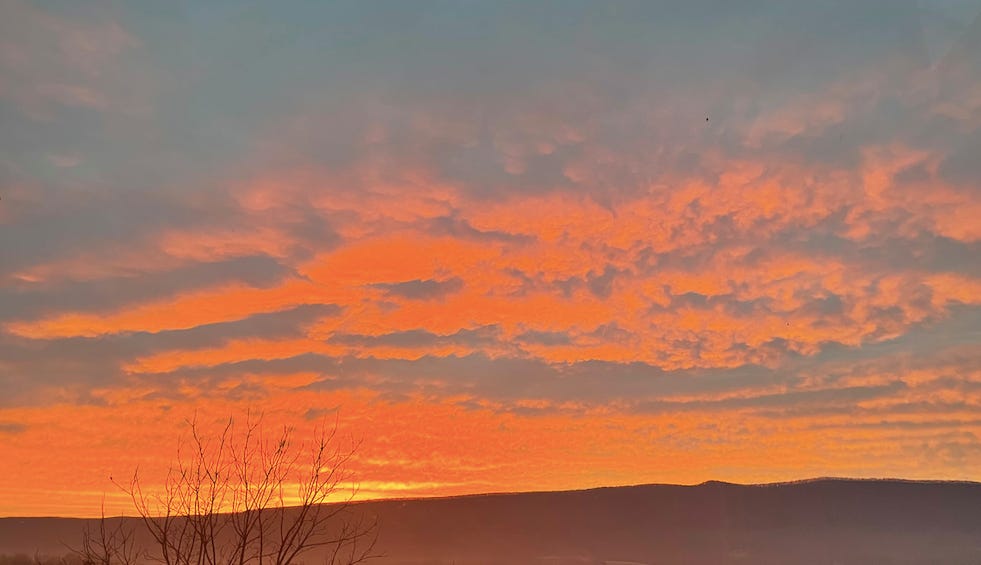 Friends, I woke up with the first few lines of this writing circling my mind, again and again, and when I gave in to the urge to jot it down in my bedside notebook, my pen died, and I had to fully get up, and I was greeted with a blaze of pink orange sunrise, and then the writing just kept going. I wrote this all in a frenzy, letting it flow out onto the tiny pages. Here it is.